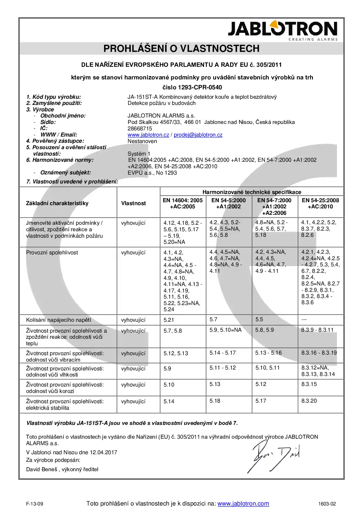 Slouží k detekci požárního nebezpečí v interiéru obytných nebo komerčních budov. Jeho součástí je sirénka, která hlásí požární poplach jak z vlastního detektoru, tak z jiného požárního detektoru v systému. Splňuje ČSN EN 14604 pro autonomní detekci požáru.